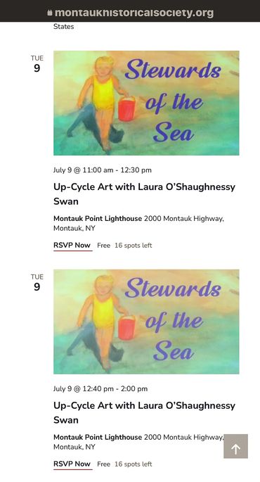On July 6th and August 3rd, 2022 at the Lighthouse’s Montauk Oceans Institute, in Montauk, NY, Art educator Laura O’Shaughnessy-Swan guided visitors from all over the globe as they created a unique piece of repurposed art to take home! The focus was about marine debris plastics and the important role we all play in